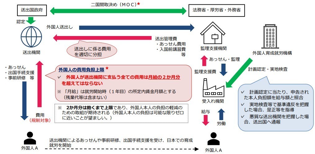 育成就労外国人が送出機関に支払った費用の額は外国人が日本で受け取る 月給の2ヶ月分(育成就労計画に記載された報酬の月額 に2を乗じて得た額)を超えてはならない。