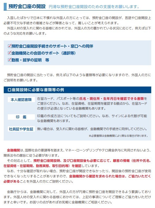 外国人の受入れ・共生に関する金融関連施策について